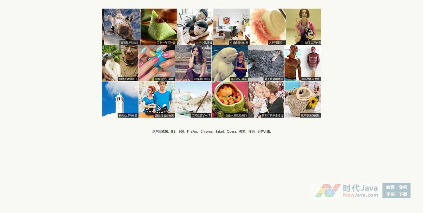 jQuery实现的大屏多行图片滚动特效源码,是一段实现了多行图片滚动效果的代码,此段实例中显示的是三行图片滚动效果,当然三行图片没有同时滚动,而是错开时间,当鼠标悬停在图片上时,该行图片除当前选择的图片之外,其它的图片都被遮罩层遮罩了,同时,每行图片一次只滚动一张图片。此段代码适用于所有网页使用,有兴趣的朋友们可以前来下载使用。本段代码兼容目前最新的各类主流浏览器,是一款非常优秀的特效源码。