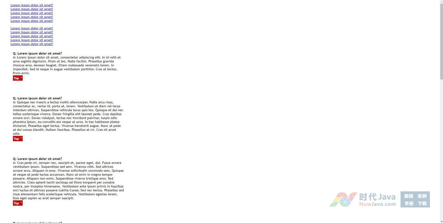 基于jQuery实现的滚动链接FAQ效果