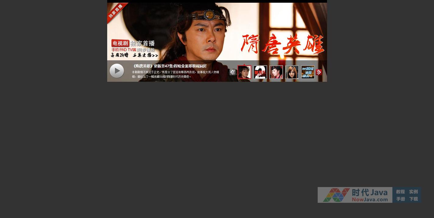 这是一款基于jQuery实现的仿乐视电影网站带缩略图的焦点图轮播特效源码,可以实现焦点图的自动轮播功能,也可通过鼠标滑过底部的焦点图来实现对应图片的转换功能,鼠标滑过左侧的播放按钮还可弹出播放工具的小图标,过度效果流畅自然,界面美观大方,是一款非常优秀的特效源码。该源码兼容目前最新的各类主流浏览器。