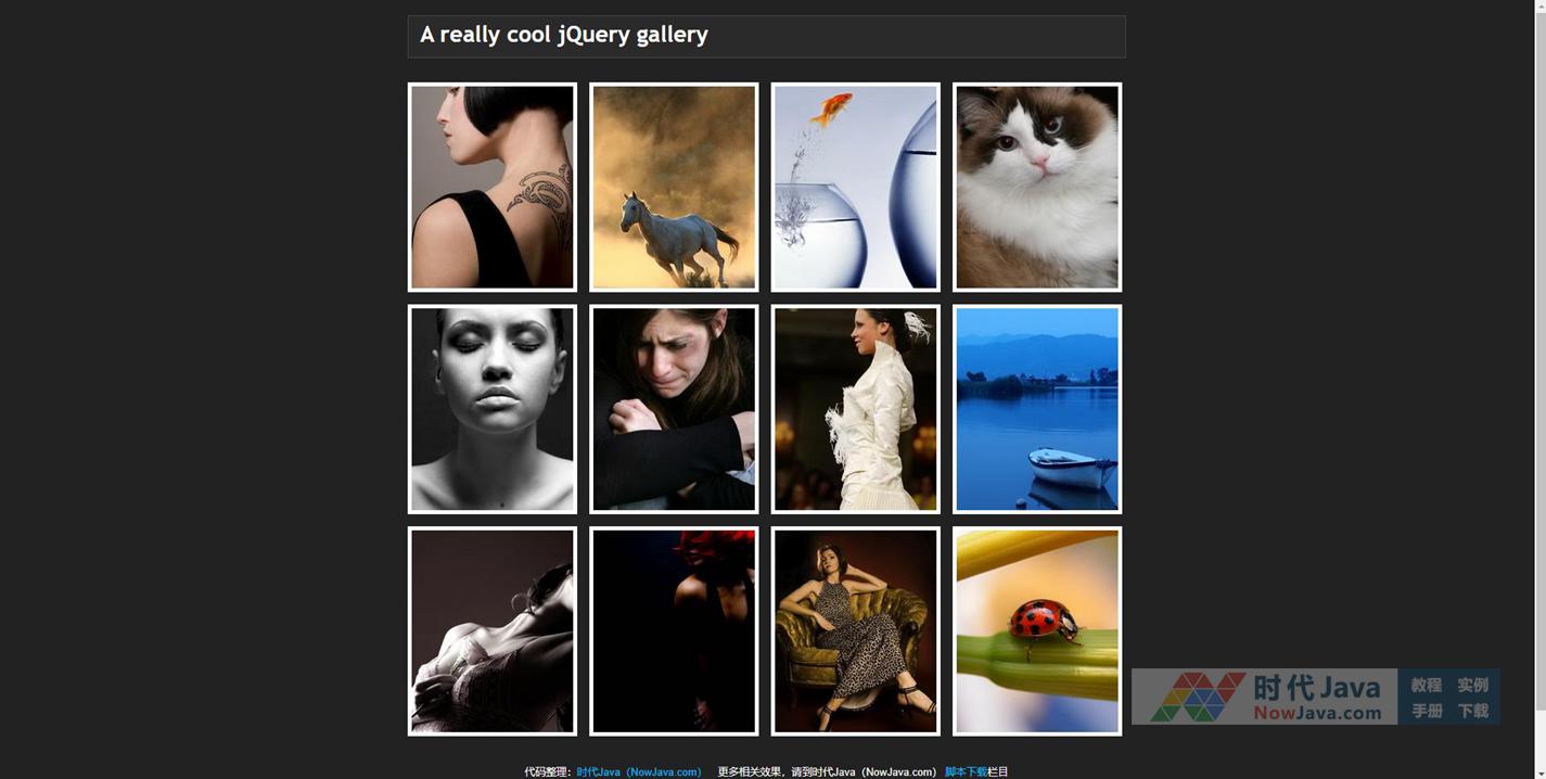 jQuery实现的相册展示效果,点击小图可以高亮显示大图,带有向前和向后翻阅,非常不错。