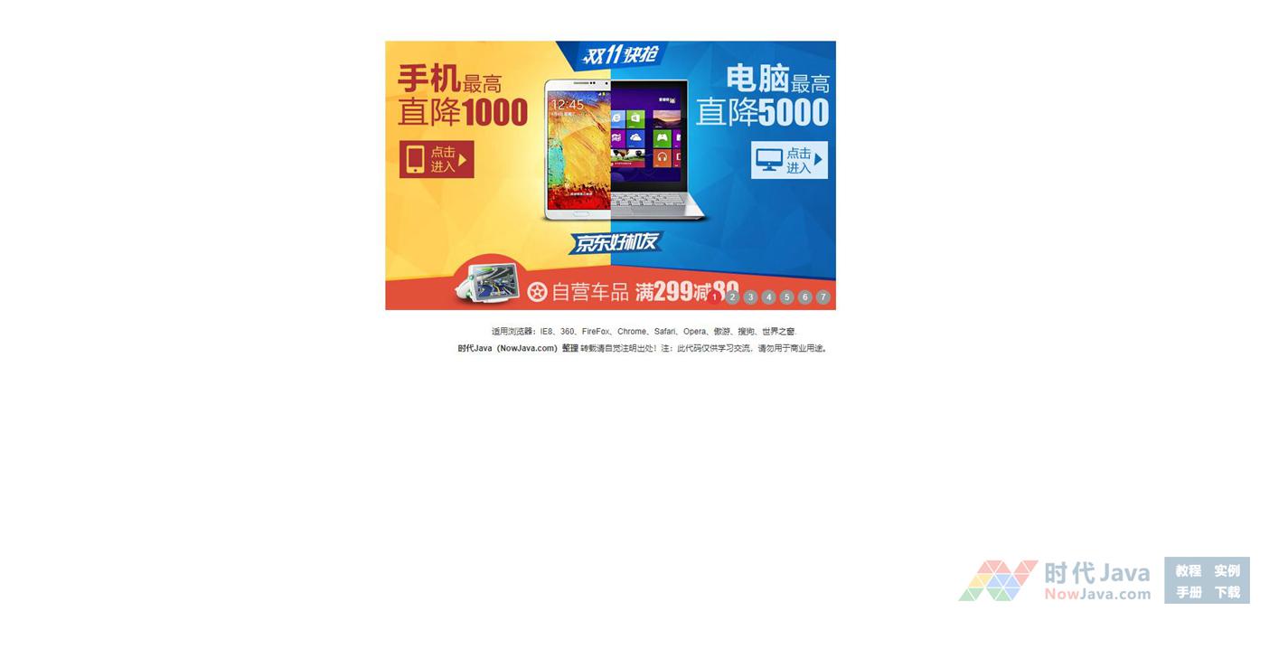 jquery实现的京东商城双11焦点图多图广告滑动及自动切换动画效果源码,是一段模仿京东商城双11的焦点图代码,专业应用于网站的图片展示及重点展示的区域,该段代码实现了鼠标滑过切换图片及自动切换图片两种效果,需要此段代码的朋友们可以前来下载使用。本段代码运行流畅,反应速度灵敏,是一段非常优秀的特效源码。建议采用支持HTML5的火狐胡谷歌等浏览器运行本源码。