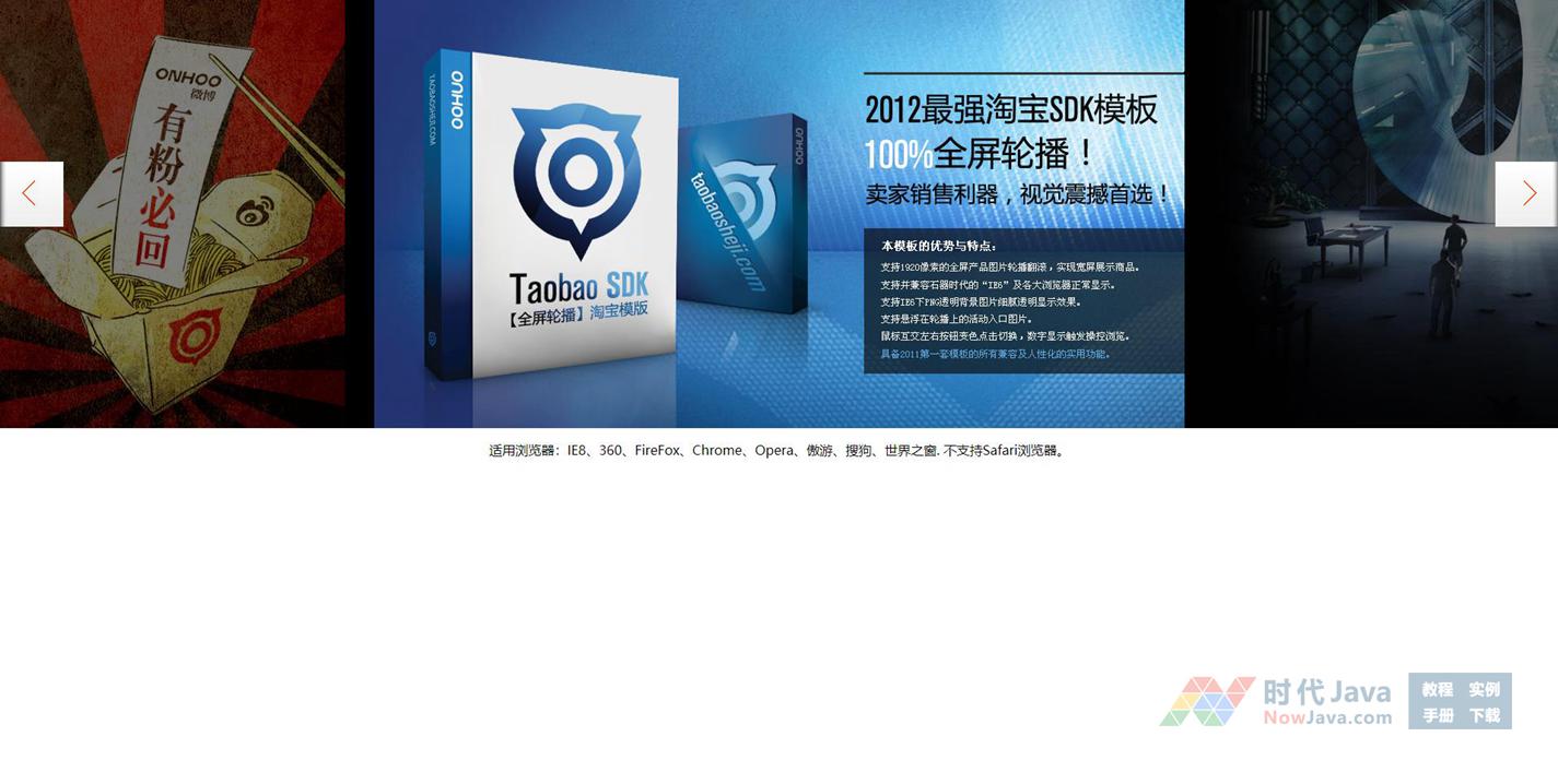 jquery实现的两边会显示部分额外2张图片的宽屏通栏焦点图特效源码,是一段实现了在当前图片的前后位置,遮罩显示了当前图片的前后两张图片的部分区域的焦点图效果源码,该段实例带有左右切换按钮,同时此款焦点图不支持自动轮播,只可以手动切换显示,此段代码适应于所有网页使用,有兴趣的朋友们可以前来下载使用。本段代码兼容目前最新的各类主流浏览器,是一款非常优秀的特效源码。