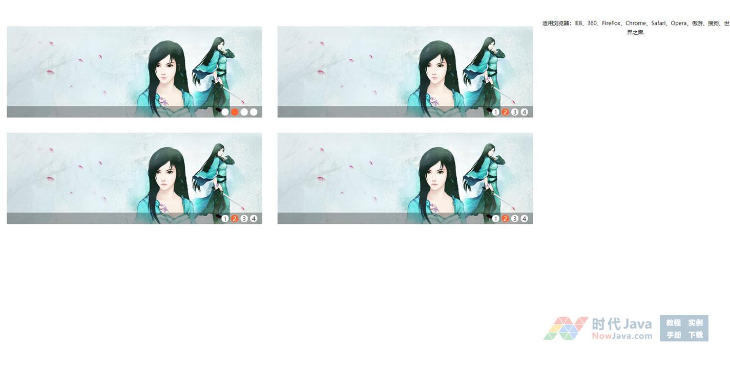 jQuery实现的四款支持不同自定义图片切换的焦点图插件特效源码L_slide.js,是一段可以实现自定义图片切换的焦点图动画特效代码,本段代码中包含四款焦点图切换效果,大家可以选择自己喜欢的一款使用,需要此段代码的朋友们可以前来下载使用。本款代码是一段非常优秀的特效源码。建议采用支持HTML5的火狐胡谷歌等浏览器运行本源码。