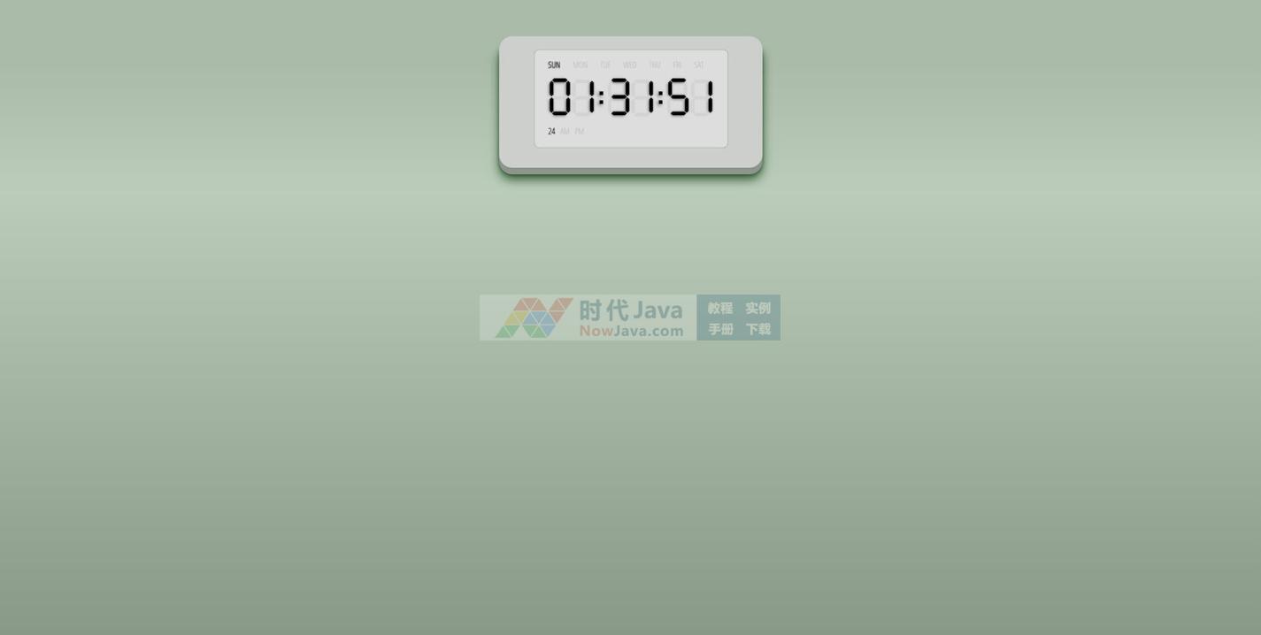 这是一款基于jQuery Mobile实现的数字时钟动画效果源码。带有渐变色的背景上悬浮着一个有立体视觉效果的数字时钟,数字时钟上方显示着星期数值,下方可点击切换12小时制与24小时制的切换显示功能。可应用于移动端的时间显示。建议使用支持HTML5与css3效果较好的火狐(Firefox)或谷歌(Chrome)等浏览器预览本源码。