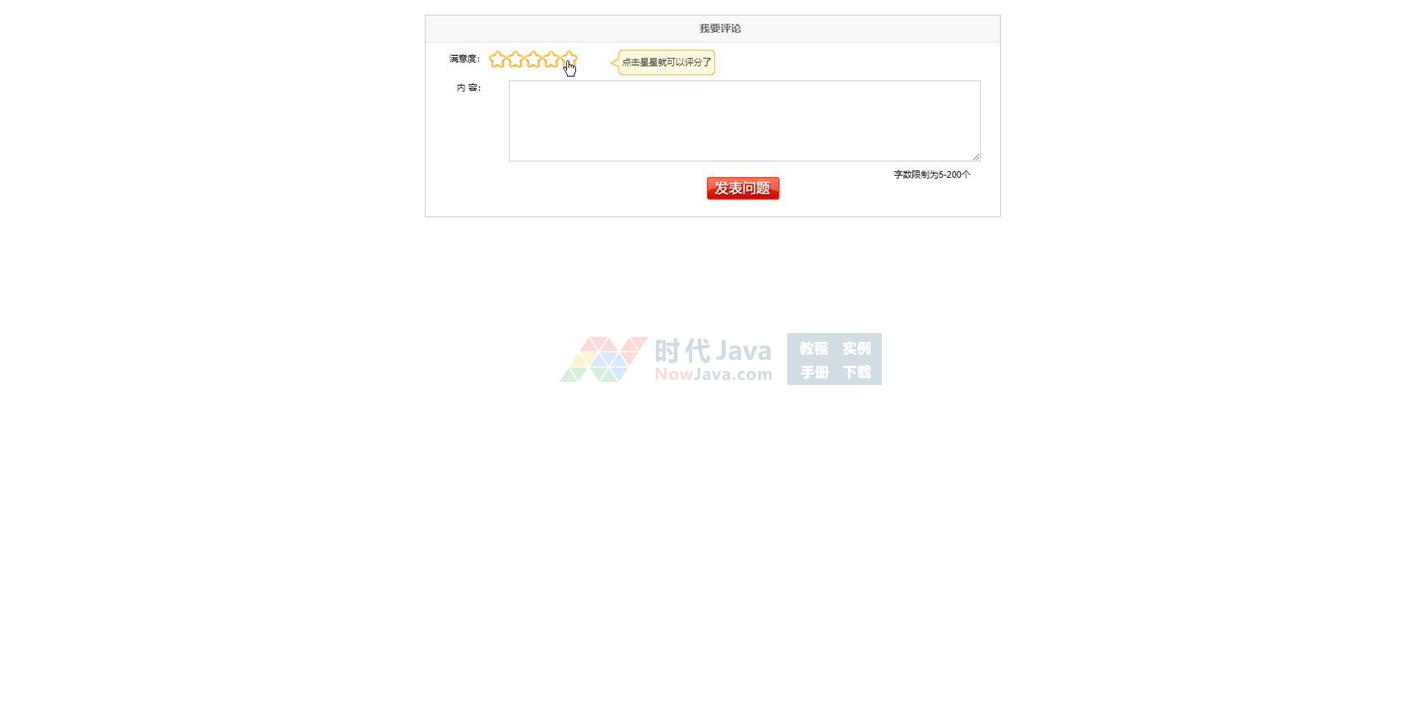 基于jQuery 的星级评分效果实例,鼠标滑过星星区域显示评论信息提交内容,适用在评论表单里面,是表单美化提交内容的一种用户体验设计,可以自定义每个五角星代表的分值,鼠标滑过五角星时即可计算当前的分值,推荐给大家,有需要的小伙伴可以前来下载使用。