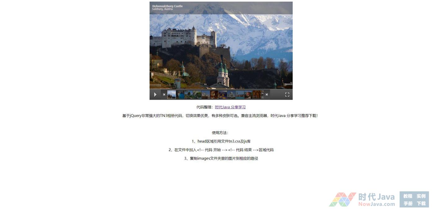 这是一款基于jQuery实现的功能非常强大的TN3相册源码,其切换效果优美自然,且切换效果变化多样,还有多种皮肤可供选择。图片左右配有切换按钮,可实现图片的左右切换。该源码基于jQuery实现,具有良好的兼容性。可兼容目前最新的主流浏览器。