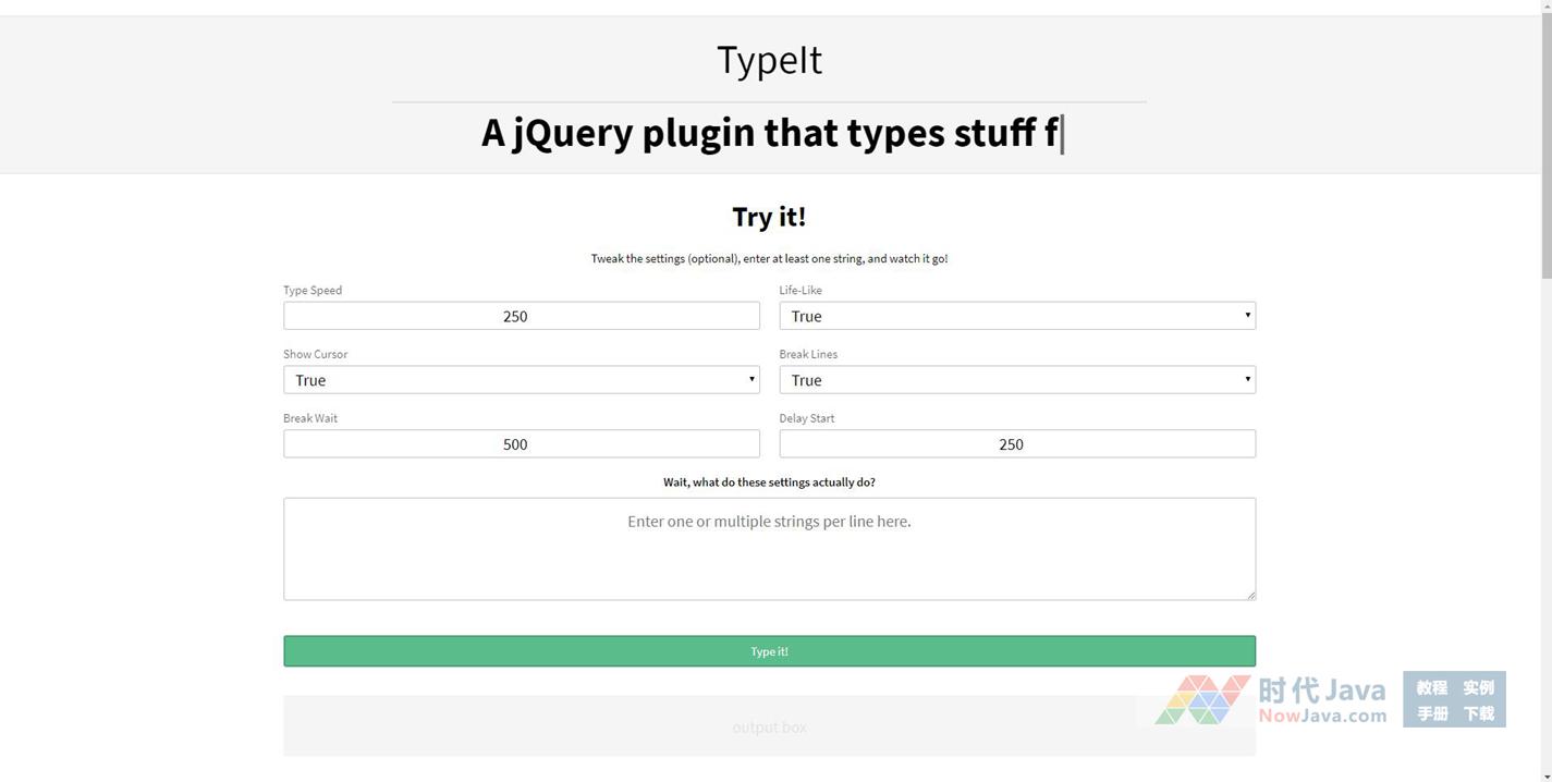jQuery实现可自定义打字参数的打字机文字特效源码
