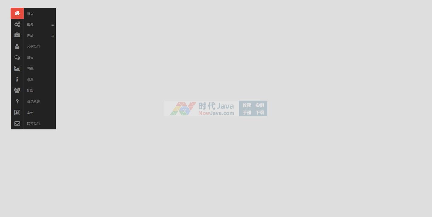 这款Win8风格垂直四级导航菜单是一款基于jQuery制作的Win8 Metro界面风格适用于公司企业网站使用的黑色四级图标导航菜单。有首页、服务、产品、关于我们、博客、导航、信息、团队、常见问题、案例、联系我们等 网站栏目名称,兼容各大浏览器,效果很好,很流畅。