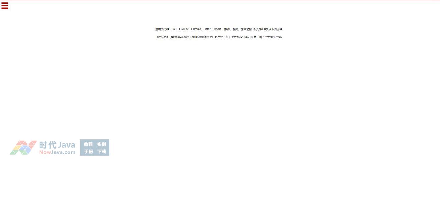 jQuery实现的红色手机客户端网站左侧隐藏导航菜单特效源码,是一段主要在手机客户端上使用的可以隐藏左侧导航菜单的代码,点击即可展开被隐藏的内容,需要此段代码的朋友们可以前来下载使用。本段代码运行流畅,反应速度灵敏,是一段非常优秀的特效源码。建议采用支持HTML5的火狐胡谷歌等浏览器运行本源码。
