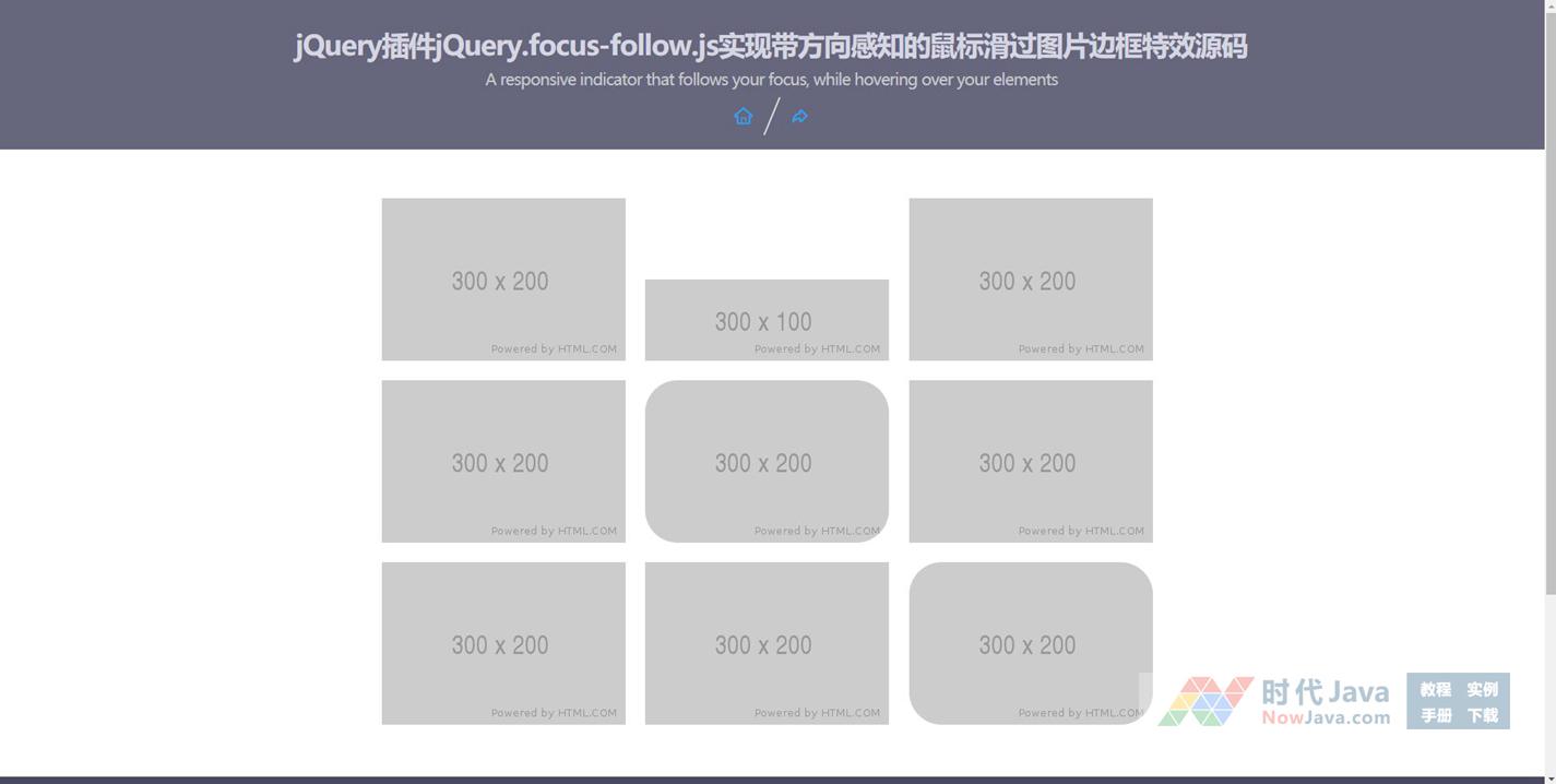 jQuery插件jQuery.focus-follow.js实现带方向感知的鼠标滑过图片边框特效源码是一款带方向感知的鼠标滑过图片边框特效jQuery插件。在鼠标滑过图片的时候,插件会感知鼠标的位置,将相应大小的图片边框从不同位置进入,图片边框会根据图片大小而变化,还可以有圆角效果。本段代码适应于所有网站使用,有需要的朋友们可以前来下载使用,本段代码兼容目前最新的各类主流浏览器,是一款非常优秀的特效源码。