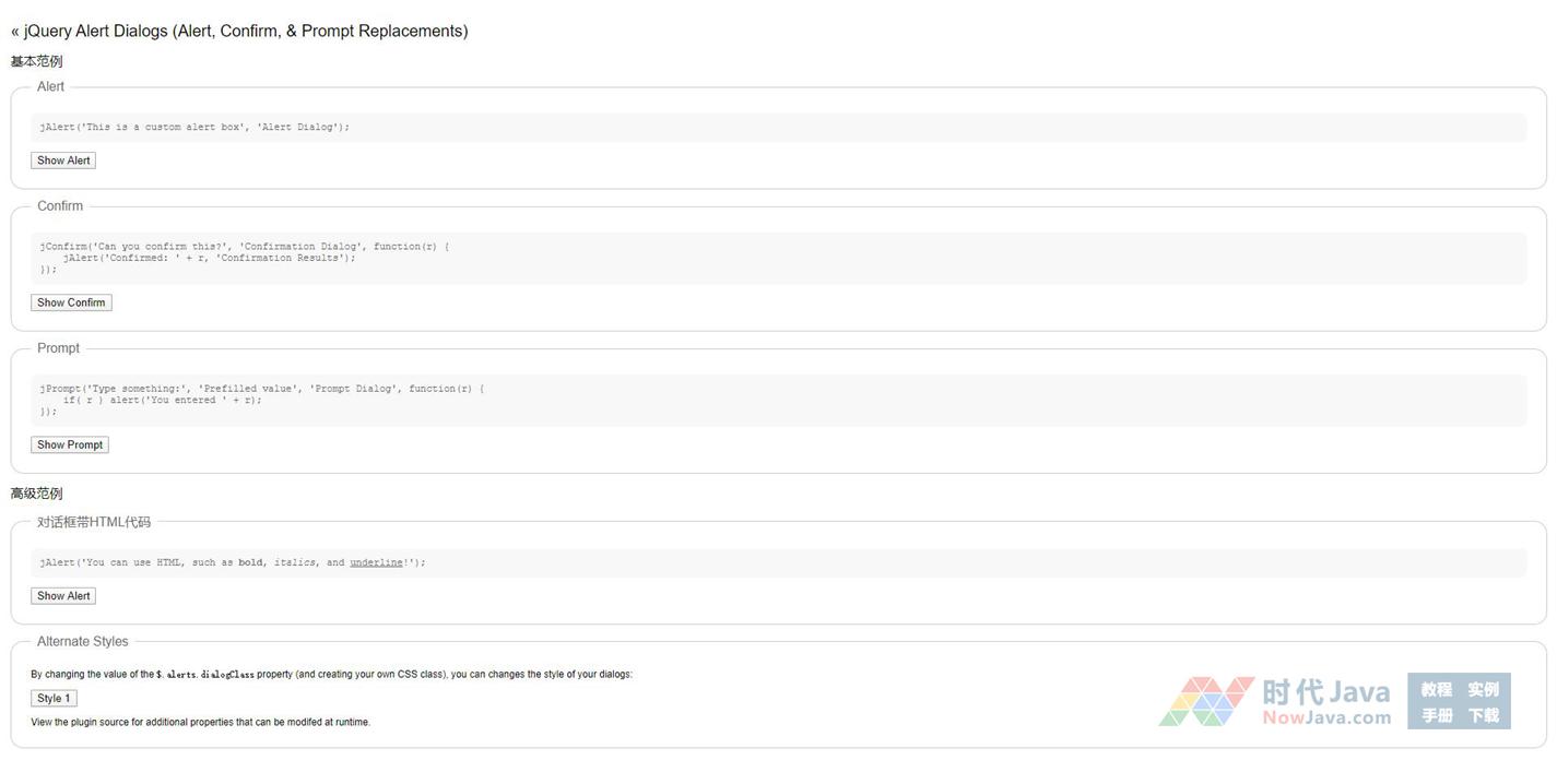 这个Jquery插件的目的是替代JavaScript的标准函数alert(),confirm(),和 prompt()。这个插件有
