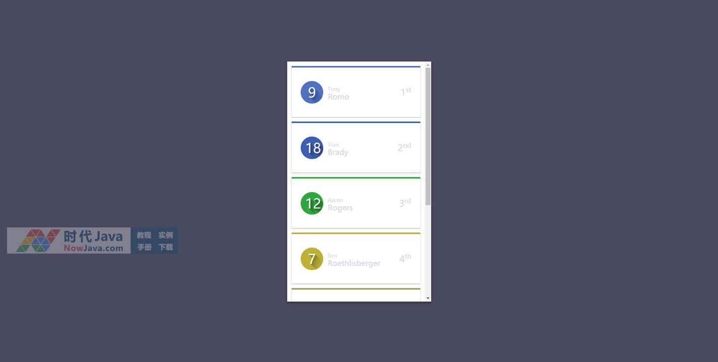 是一款Material Design风格的信息卡片UI设计效果。本段代码适应于所有网页使用,有兴趣的朋友们可以前来下载使用。本段代码兼容目前最新的各类主流浏览器,是一款非常优秀的特效源码。