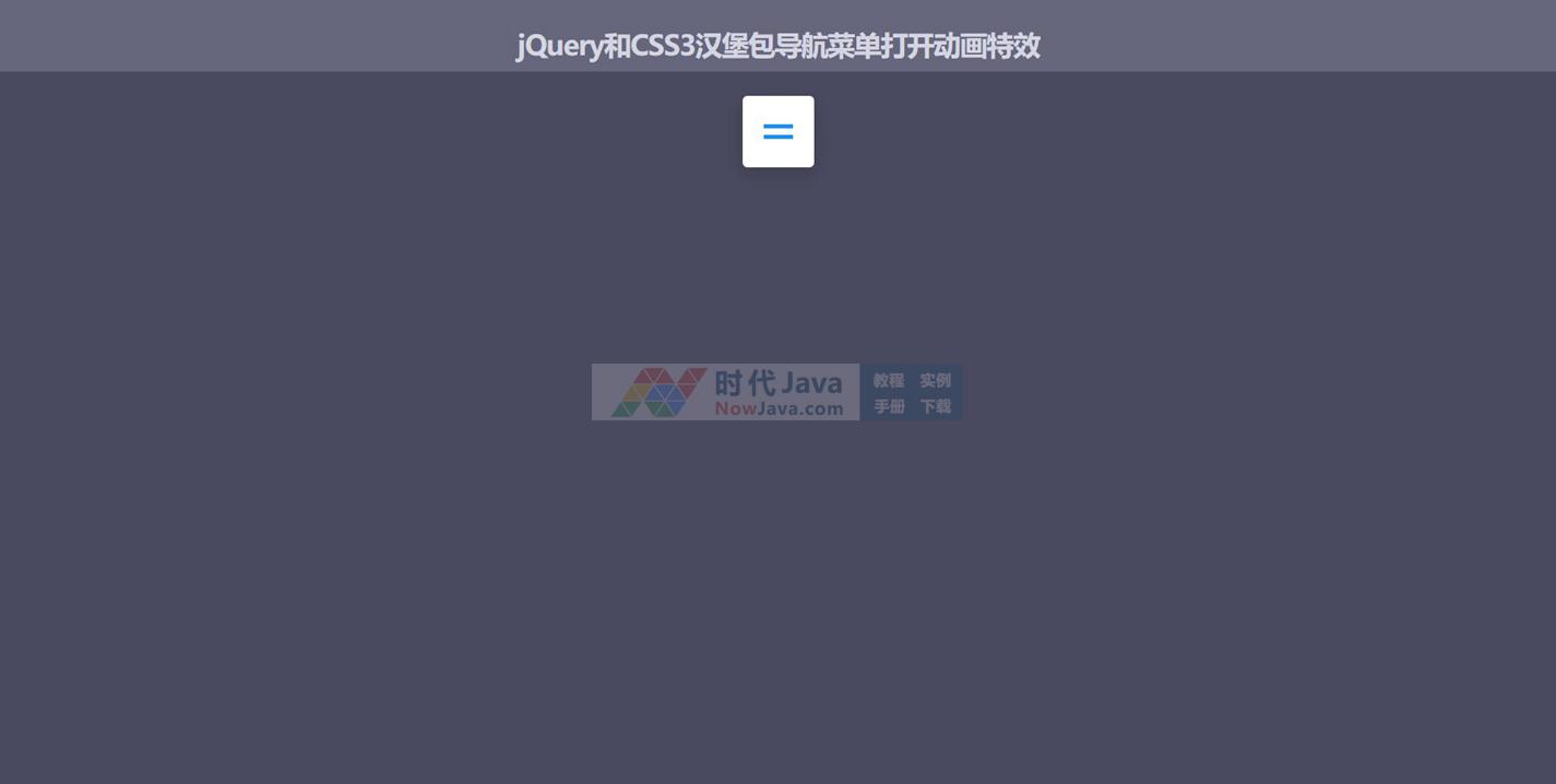 jQuery和CSS3实现的汉堡包导航菜单打开动画特效源码是一段实现了用户点击汉堡包图标时,图标以弹性变形的方式水平展开包含导航内容的效果代码,整个动画的特点是弹性十足,是一个效果非常好的汉堡包导航菜单打开效果,本缎代码适应于所有网页使用,有兴趣的朋友们可以前来下载使用。本段代码兼容目前最新的各类主流浏览器,是一款非常优秀的特效源码。