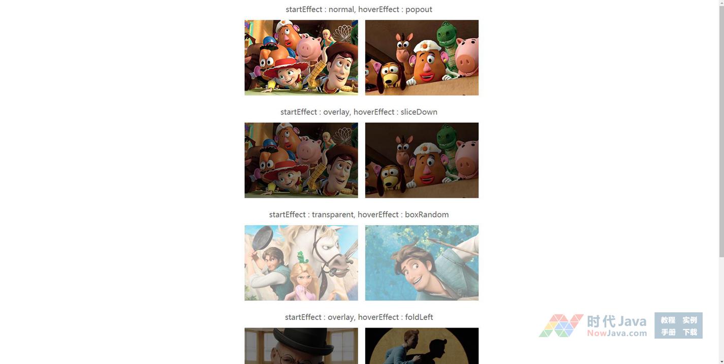 默认图片带点灰色蒙版效果,鼠标移动到图片上后有多种显示效果。例如,图片变清晰,图片变大,呈格子状依次清晰,栅格状依次变清晰等多种效果,看的我都不知道该喜欢哪一个了,作者推荐下载,感兴趣的各位可不要错过了哈