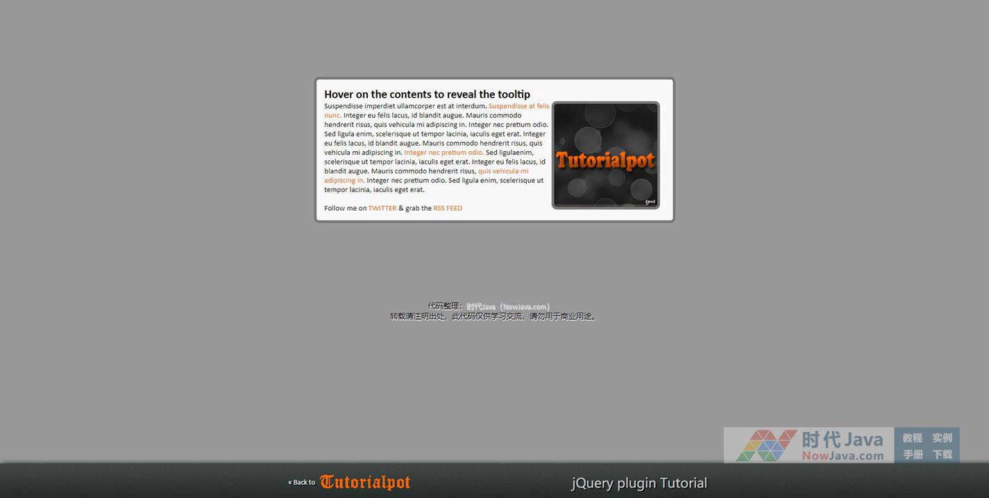 jQuery实现简单实用的动态信息提示框tips效果,效果可以用在超级链接上,也可以用在图片上,鼠标在链接或者图片上悬停时会动态显示一个自定义内容的提示信息,经测试效果非常酷,而且使用,强烈推荐。