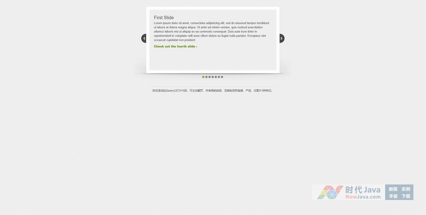 自动滚动的jQuery幻灯片代码,可左右翻页,并有导航按钮,这是纯文字版,不是图片切换,不过大致的思路是一样的,稍微修改就可变为图片版了。 里面的内容可以根据需要修改。