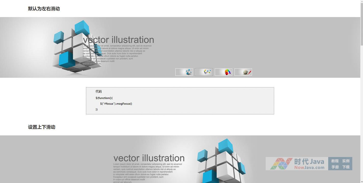 一个非常不错的焦点图切换效果,带有左右切换箭头、缩略图。默认为左右切换效果,当然,其他效果(上下滑动/淡入淡出)稍作修改也是可以实现的,并且包含参数说明文档很详细的,热爱特效的你可不要错过了哈,希望本例可以帮助到你