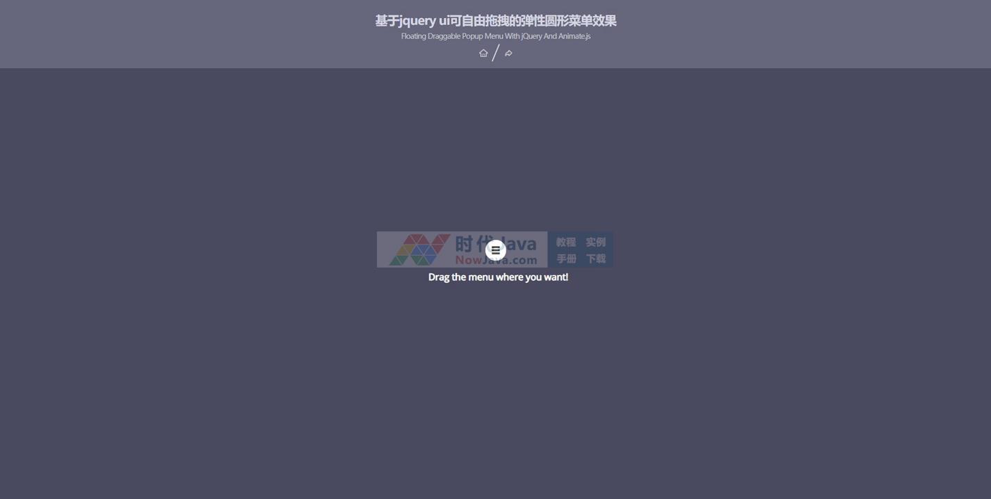 这是一款基于jquery ui的可自由拖拽的弹性圆形菜单效果。该圆形菜单可以通过点击一个圆形按钮来弹出4个子菜单按钮。弹性效果由anime.js来制作,效果非常炫酷。本段代码兼容目前最新的各类主流浏览器,适用浏览器:搜狗、360、FireFox、Chrome、Safari、Opera、傲游、世界之窗,不支持IE8及以下浏览器。是一款不错的的特效插件,有兴趣的朋友们可以来下载试试,希望大家喜欢!