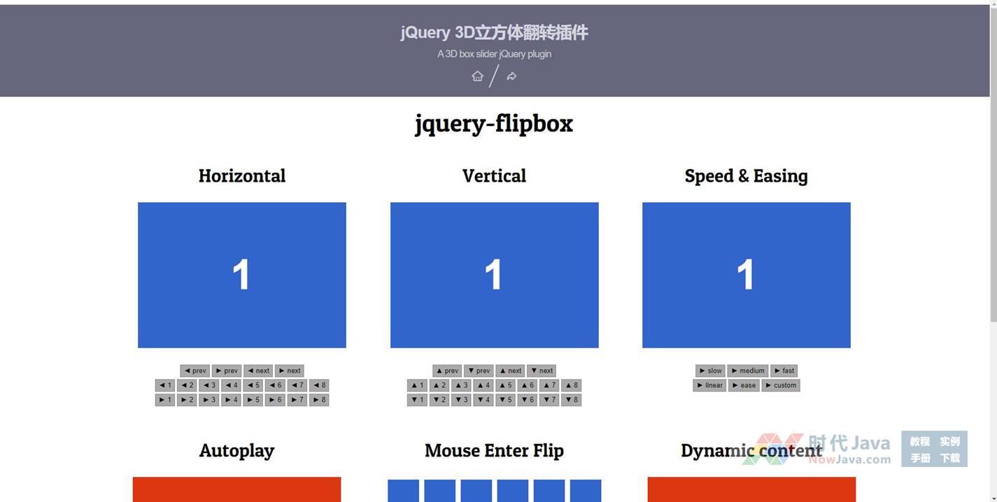 该jquery 3D立方体翻转插件的github地址为:https://github.com/krebszattila/jquery-flipbox