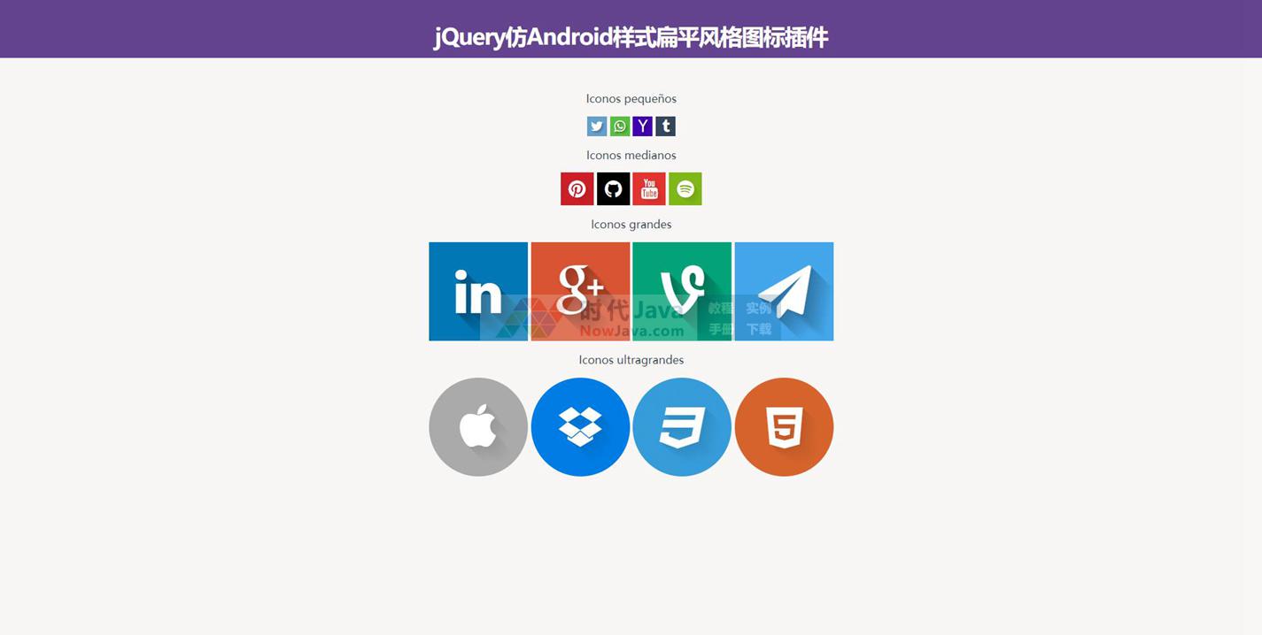 jQuery仿Android样式扁平风格图标插件源码是一款可以制作安卓(Android)样式的Material-Design扁平风格图标的jQuery插件Flatify的代码。它小巧实用,通过简单的设置,就可以制作出多种扁平风格的图标。本代码适用浏览器:360、FireFox、Chrome、Safari、Opera、傲游、搜狗、世界之窗. 不支持IE8及以下浏览器。有兴趣的朋友们可以来下载试试吧。本段代码兼容目前最新的各类主流浏览器,是一款非常优秀的特效源码。希望大家可以喜欢!