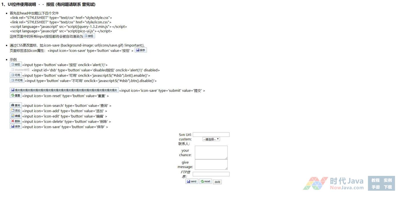 开发项目时,经常需要自已开发一些UI组件,在这里共享一个刚开发的Button控件,这个Button使用很简单,只要加入相关的CSS和JS文件,这样页面中的所有input按扭都将会被自动渲染为漂亮的个性化按扭,不需要写一句代码。
