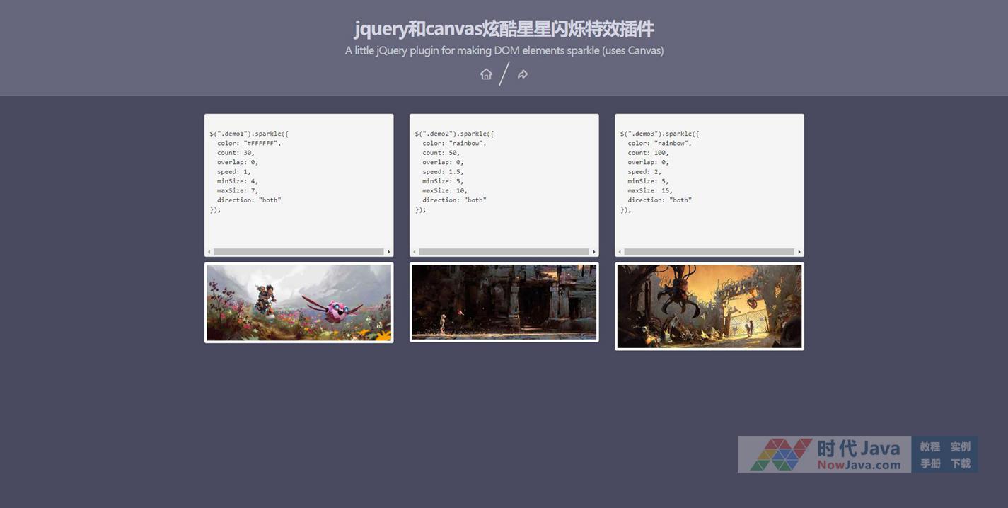 该jquery和canvas炫酷星星闪烁特效插件的github地址为:https://github.com/simeydotme/jQuery-canvas-sparkles