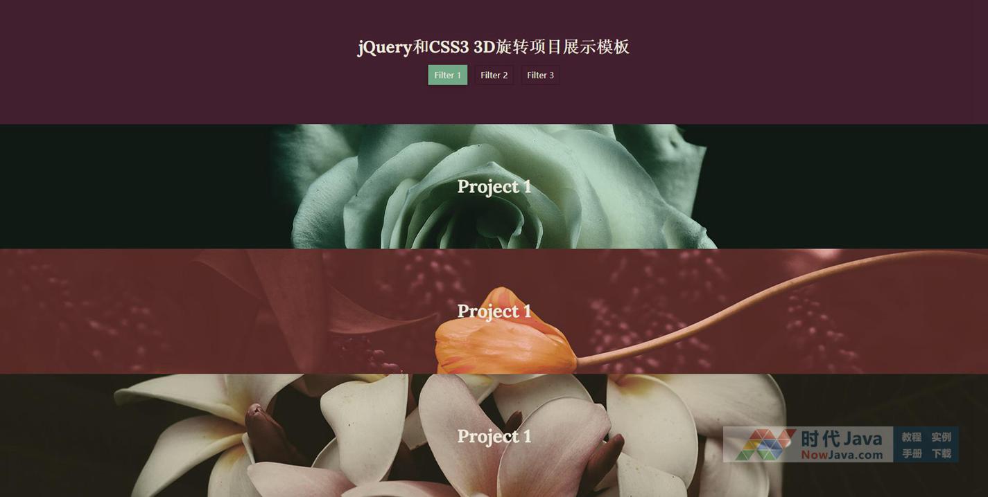 本特效是一款效果非常炫酷的jQuery和CSS3 3D旋转项目展示模板的代码。该模板通过CSS3 3D transform来制作3D立方体的旋转效果,使各个项目在切换时呈现立方体旋转效果。本段代码兼容目前最新的各类主流浏览器,是一款非常优秀的特效源码。本代码适用浏览器:搜狗、360、FireFox、Chrome、Safari、Opera、傲游、世界之窗,不支持IE8及以下浏览器。有兴趣的朋友们可以来下载试试吧!