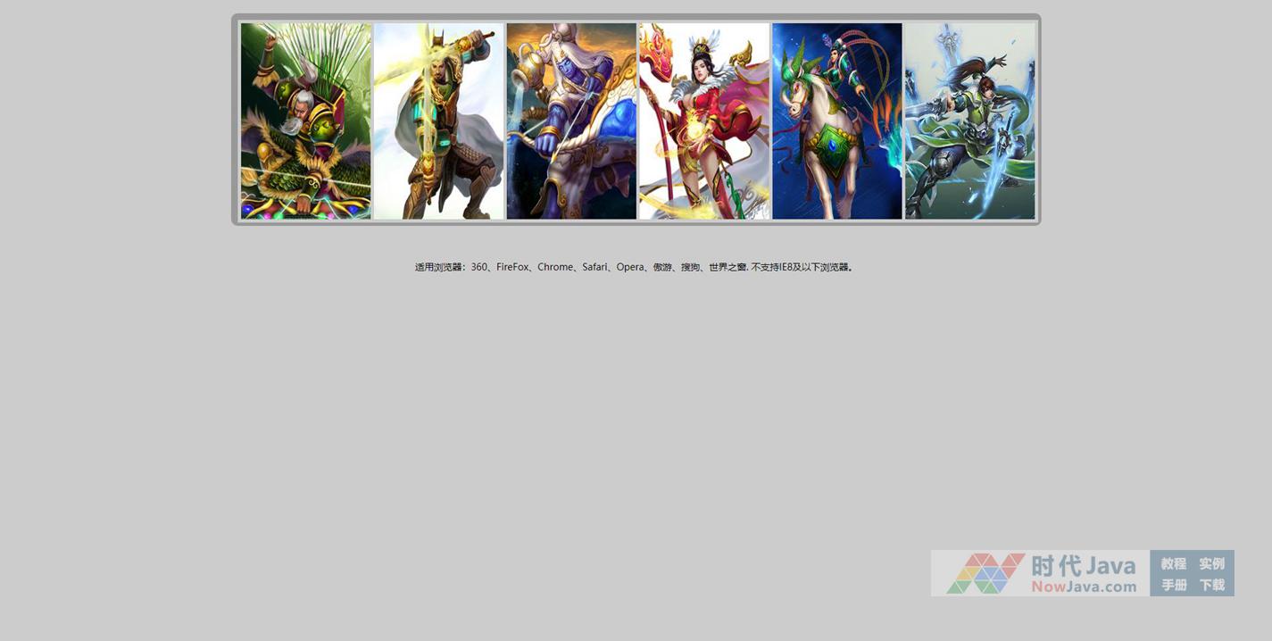 是一款图片横向排成一排,鼠标点击图片展开图片文字说明。本段代码适应于所有网站使用,有需要的朋友们可以前来下载使用,本段代码兼容目前最新的各类主流浏览器,是一款非常优秀的特效源码。