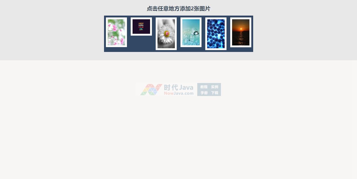 jQuery点击添加图片瀑布流布局特效源码是一个基于jquery.2.1.4.min.js制作的点击添加图片瀑布流的代码,鼠标点击网页任意地方添加2张图片,自动排版。本代码适用浏览器:360、FireFox、Chrome、Safari、Opera、傲游、搜狗、世界之窗. 不支持IE8及以下浏览器。有兴趣的朋友们可以来下载试试吧。本段代码兼容目前最新的各类主流浏览器,是一款非常优秀的特效源码。希望大家可以喜欢!