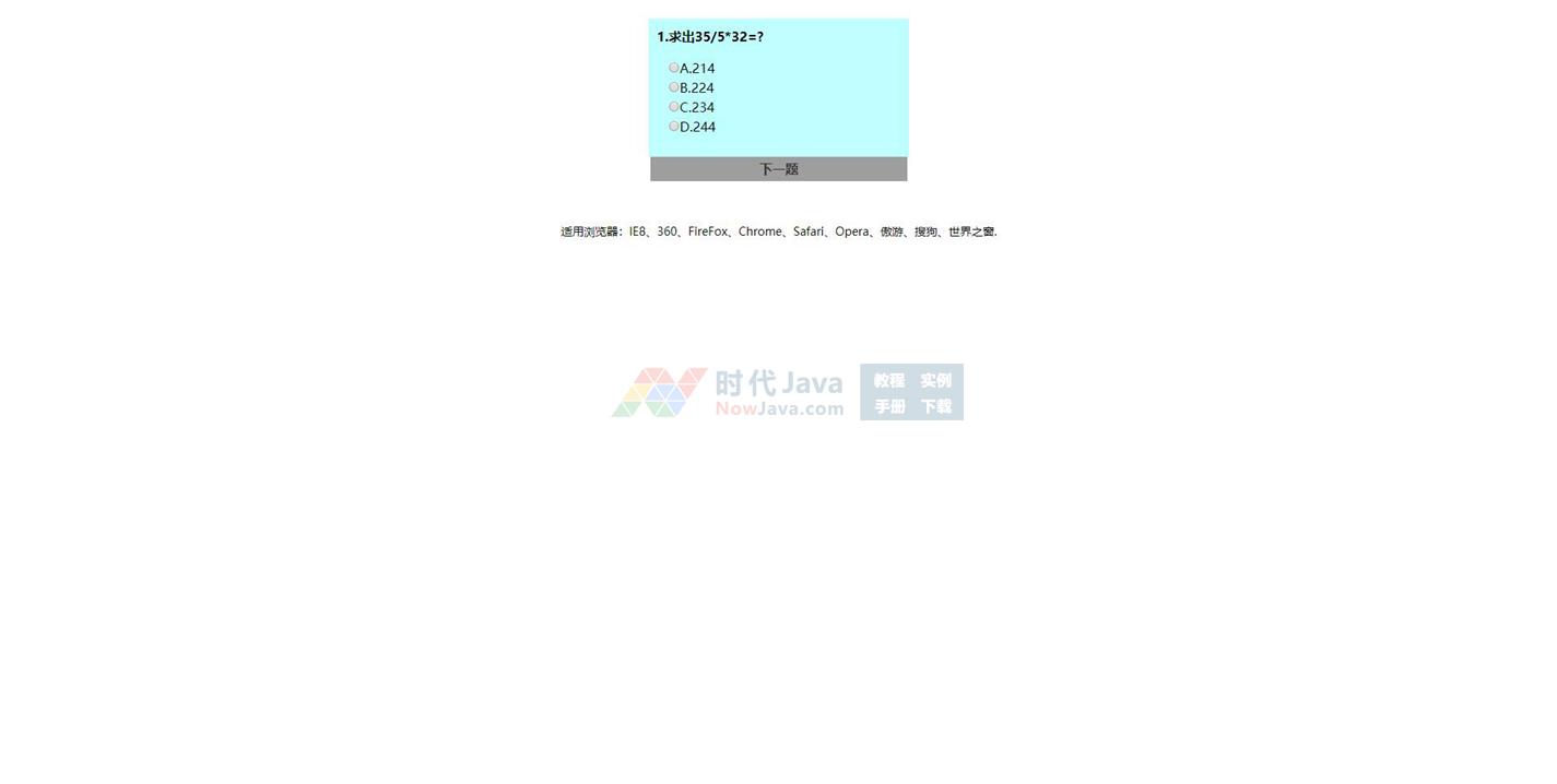 jQuery实现的单选题答题效果源代码是一段实现了我们常见的答题模式的单选题答题效果的代码,本段代码是基于jQuery实现的简洁实用的单选题系统特效,适应于所有网页使用,有兴趣的朋友们可以前来下载使用。本段代码兼容目前最新的各类主流浏览器,是一款非常优秀的特效源码。