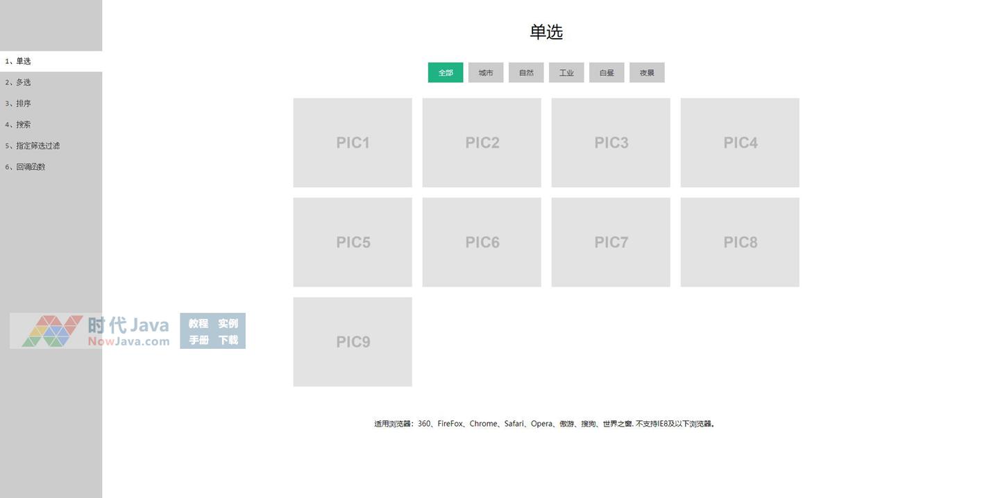 是一款基于jQuery实现的筛选过滤插件,它提供了多重筛选过滤方式,能够满足你的不同需求。本段代码适应于所有网页使用,有需要的朋友可以直接下载使用,本段代码兼容目前最新的各类主流浏览器,是一款非常优秀的特效源码!