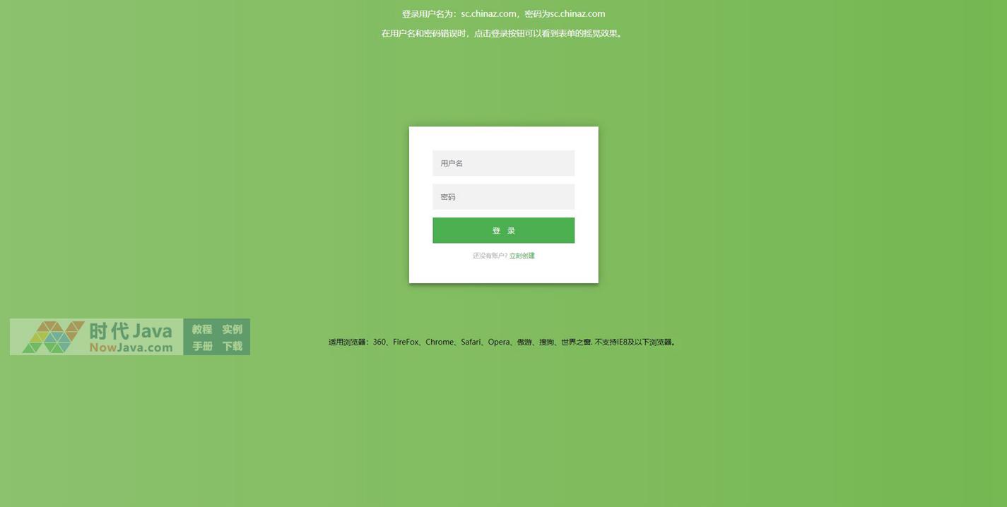 是一款通过滑动来切换用户登录和用户注册界面,并且在验证用户信息出错时,整个表单界面会有左右摇晃的动画效果。本段代码适应于所有网页使用,有需要的朋友可以直接下载使用,本段代码兼容目前最新的各类主流浏览器,是一款非常优秀的特效源码!