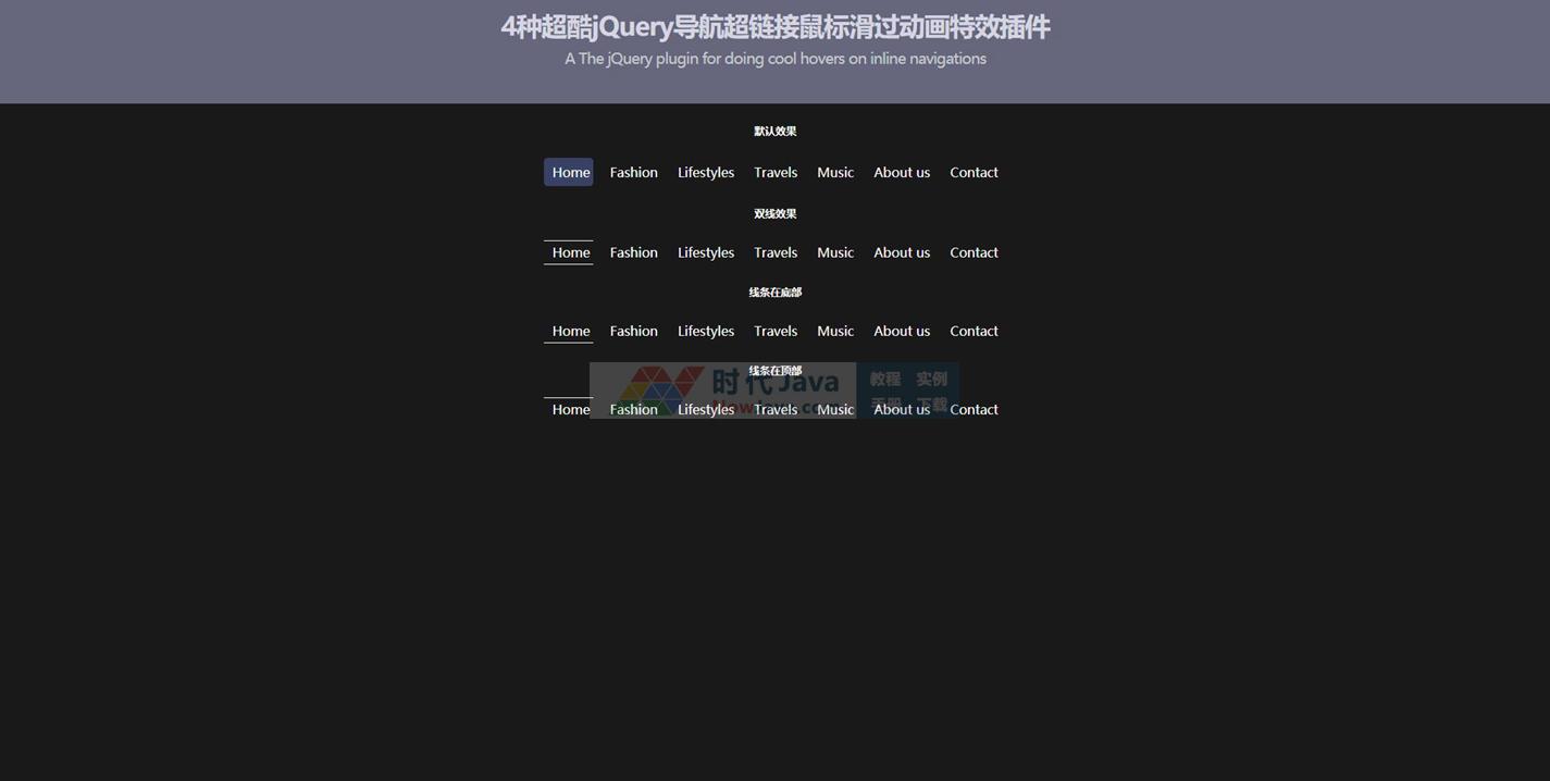 jQuery实现四种超酷鼠标滑过导航超链接动画特效插件
