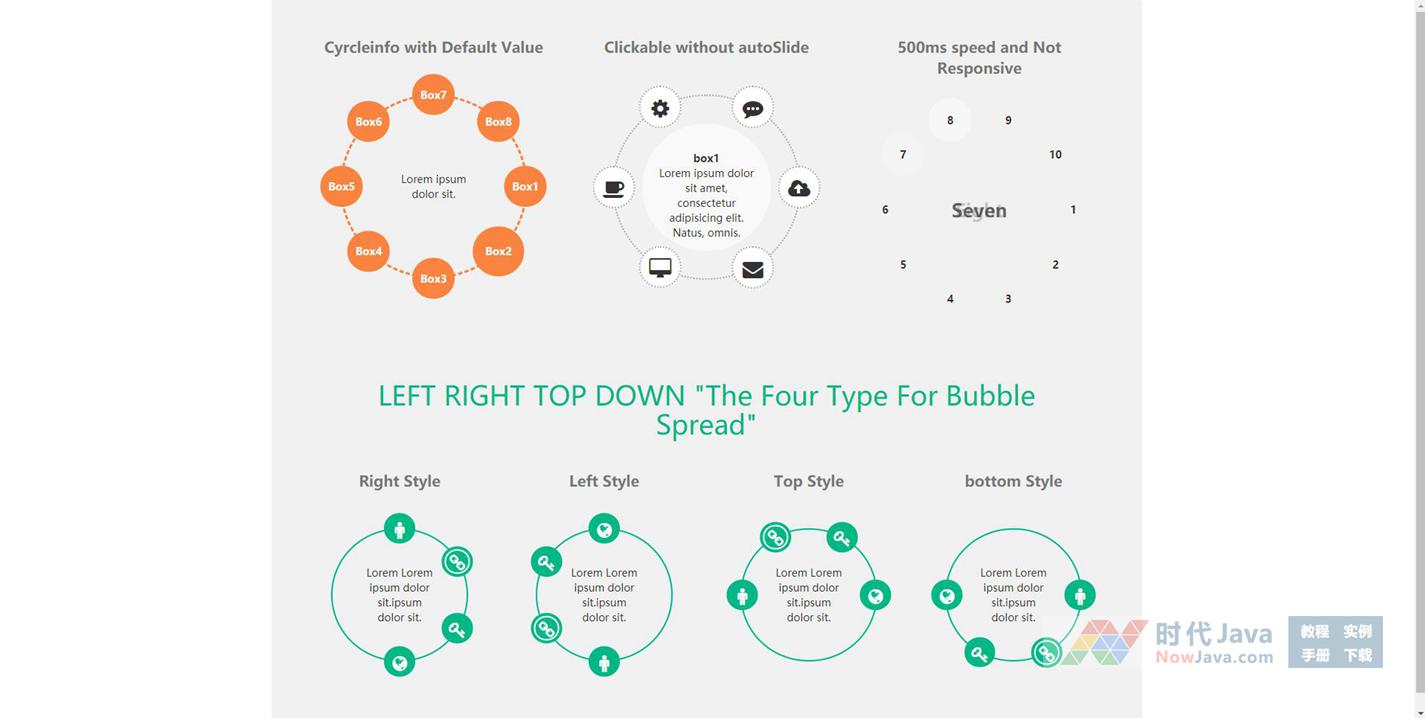 jQuery节点分布圆形循环信息展示特效源码是一款可以设置自动循环播放信息,也可以让用户手动点击展示信息,本段代码适应于所有网页使用,有兴趣的朋友们就来下载使用吧。本段代码兼容目前最新的各类主流浏览器,是一款非常优秀的特效源码。