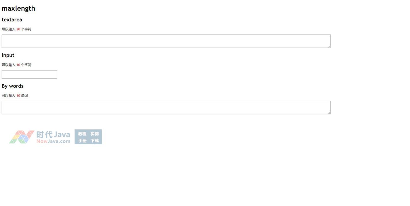 这里就介绍一种jQuery插件maxlength,它的使用非常简单,具体的可以查看演示。推荐使用。