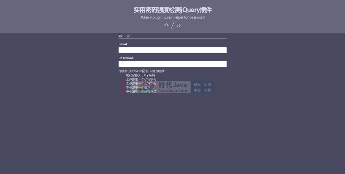 passwordRulesHelper.js是一款非常实用的密码强度检测jQuery插件。该插件内置5种密码强度规则,例如密码中必须包含大写字母和数字等。你也可以自定义自己的密码强度规则。本段代码兼容目前最新的各类主流浏览器,是一款非常优秀的特效源码。本代码适用浏览器:搜狗、360、FireFox、Chrome、Safari、Opera、傲游、世界之窗,不支持IE8及以下浏览器。有兴趣的朋友们可以来下载试试吧!
