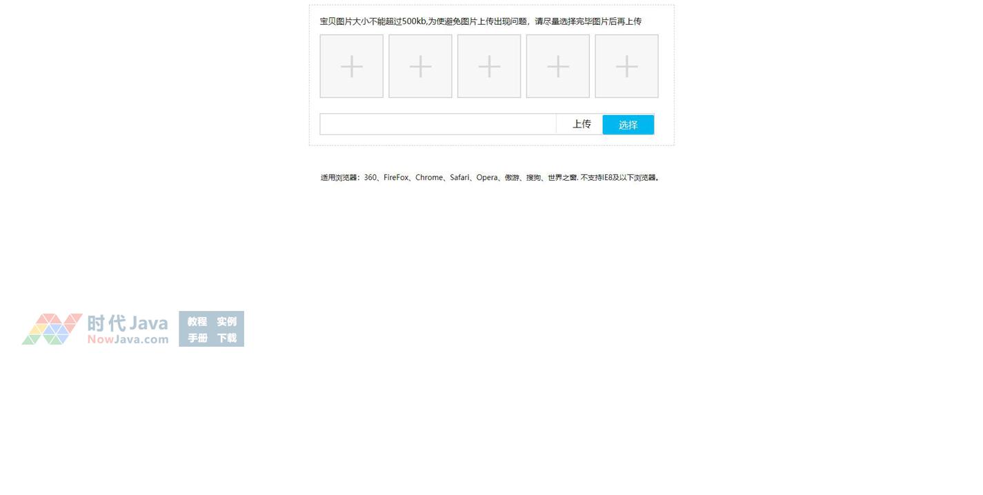jQuery仿淘宝网商品管理图片批量上传插件特效源码是一款仿淘宝网的商品管理图片上传代码。选择图片点击上传即可,可以预览。本段特效源码可以在各大网站使用,有需要的朋友直接下载使用,本段源码兼容目前最新的各类主流浏览器,是一款非常优秀的特效源码,希望对大家有所帮助,有问题及时跟我留言!