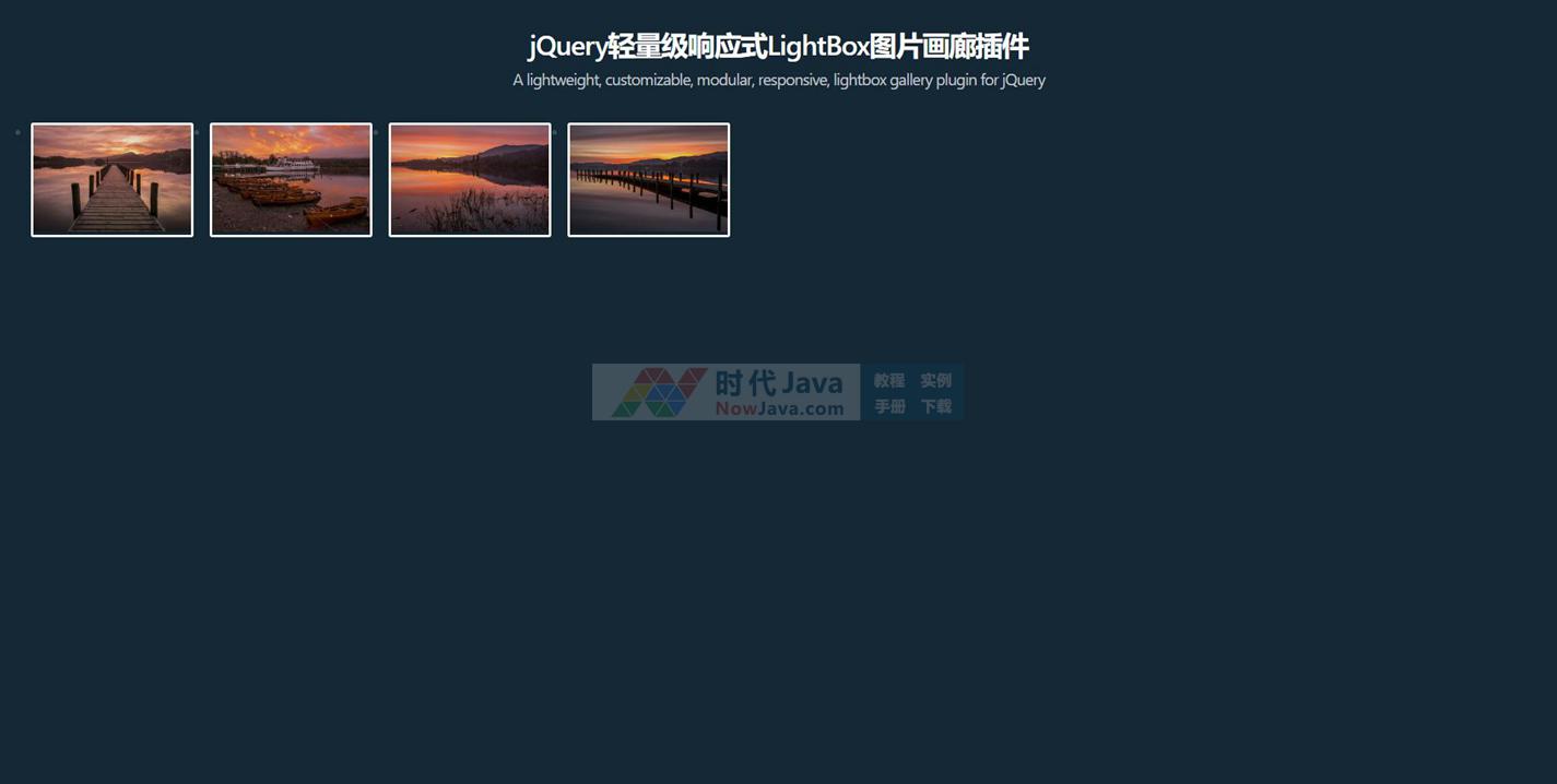 jQuery轻量级响应式LightBox图片画廊插件源码是一个基于jquery轻量响应式LightBox图片画廊插件,可以实现相册代码全屏查看,并且鼠标滑动或按箭头可左右翻动切换的效果。本代码适用浏览器:360、FireFox、Chrome、Safari、Opera、傲游、搜狗、世界之窗. 不支持IE8及以下浏览器。有兴趣的朋友们可以来下载试试吧。本段代码兼容目前最新的各类主流浏览器,是一款非常优秀的特效源码。希望大家可以喜欢!