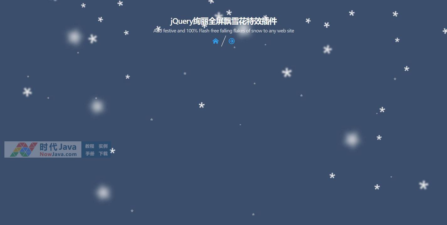 jQuery实现绚丽全屏飘雪花特效源码是一款使用jQuery制作的效果非常绚丽的全屏飘雪花特效插件。该下雪动画效果可以随机改变雪花飘落方向,雪花大小和模糊度,以制造出雪花随风飘落的真实效果。本代码适用浏览器:搜狗、360、FireFox、Chrome、Safari、Opera、傲游、世界之窗. 不支持IE8及以下浏览器。有兴趣的朋友们可以来下载试试吧。本段代码兼容目前最新的各类主流浏览器,是一款非常优秀的特效源码。希望大家可以喜欢!