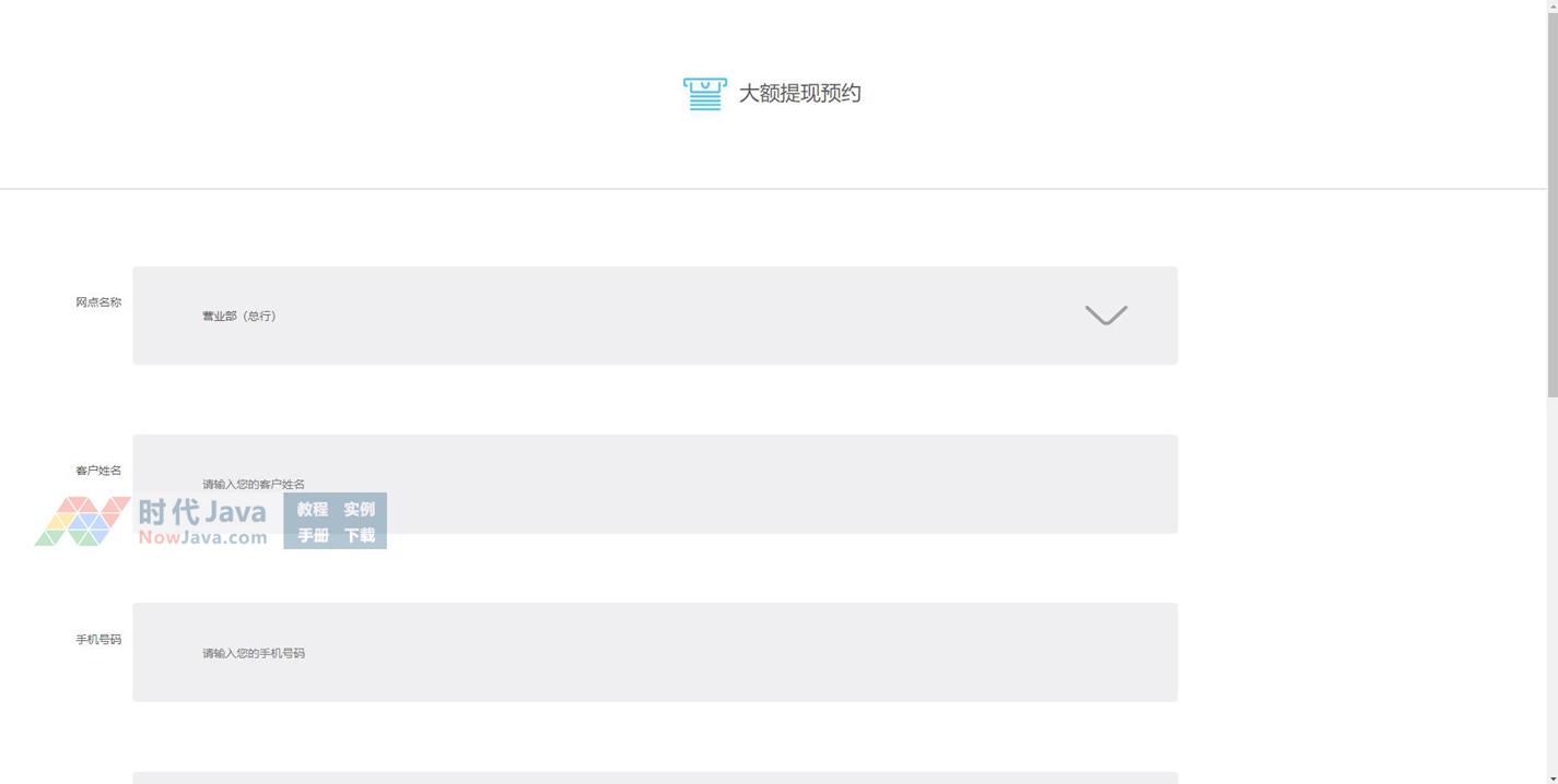 是一款div+css银行提现手机表单代码,此段代码适用于所有手机网页使用,有兴趣的朋友们可以下载使用试试。本段代码兼容目前最新的各类主流浏览器,是一款非常优秀的特效源码。
