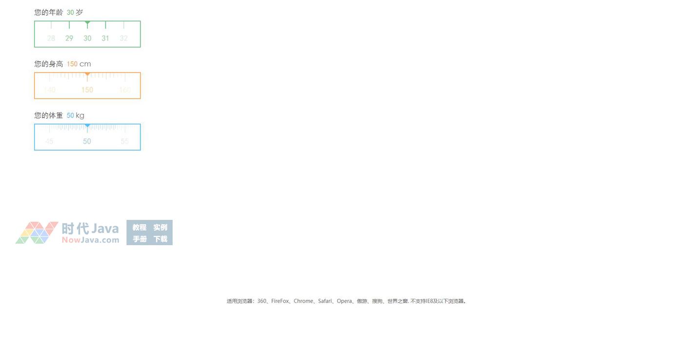 jQuery实现手指滑动刻度尺选择值特效源码