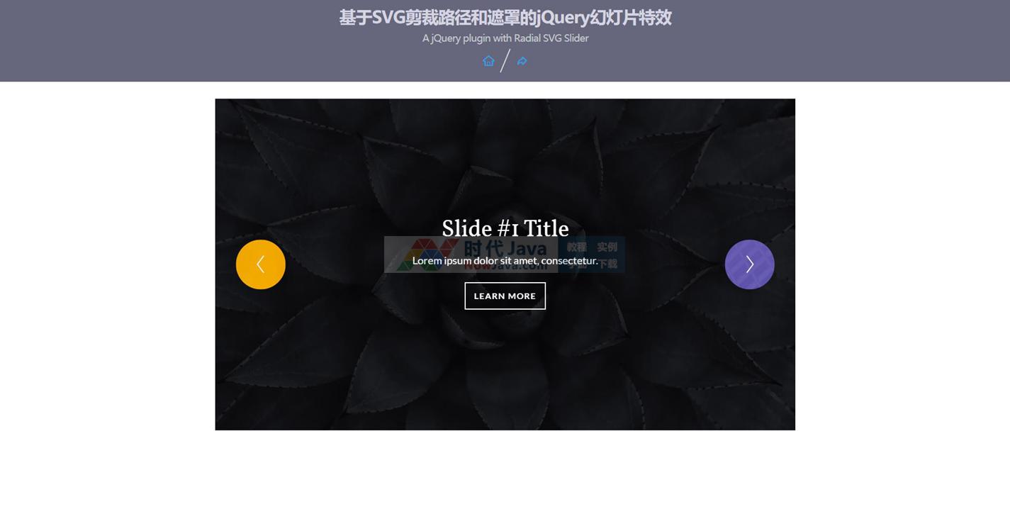 本特效是一款基于SVG clipPath(剪裁路径)和mask遮罩元素的炫酷jQuery幻灯片效果的代码。该幻灯片利用圆形的前后导航按钮,在用户点击按钮时,按钮会平滑放大,显示出下一张幻灯片。本代码适用浏览器:搜狗、360、FireFox、Chrome、Safari、Opera、傲游、世界之窗,不支持IE8及以下浏览器。有兴趣的朋友们可以来下载试试吧。本段代码兼容目前最新的各类主流浏览器,是一款非常优秀的特效源码。希望大家可以喜欢!