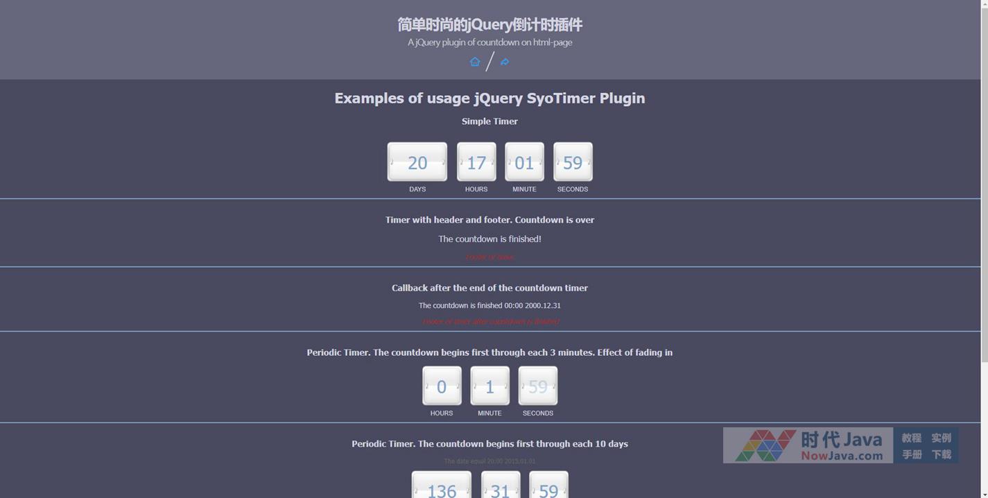 jQuery实现简单时尚的倒计时特效源码是一款基于jQuery简单时尚的倒计时插件SyoTimer的特效代码。该计时器插件支持IE8+的现代浏览器,它的界面简洁,功能齐全。本代码适用浏览器:搜狗、360、FireFox、Chrome、Safari、Opera、傲游、世界之窗. 不支持IE8及以下浏览器。有兴趣的朋友们可以来下载试试吧。本段代码兼容目前最新的各类主流浏览器,是一款非常优秀的特效源码。希望大家可以喜欢!