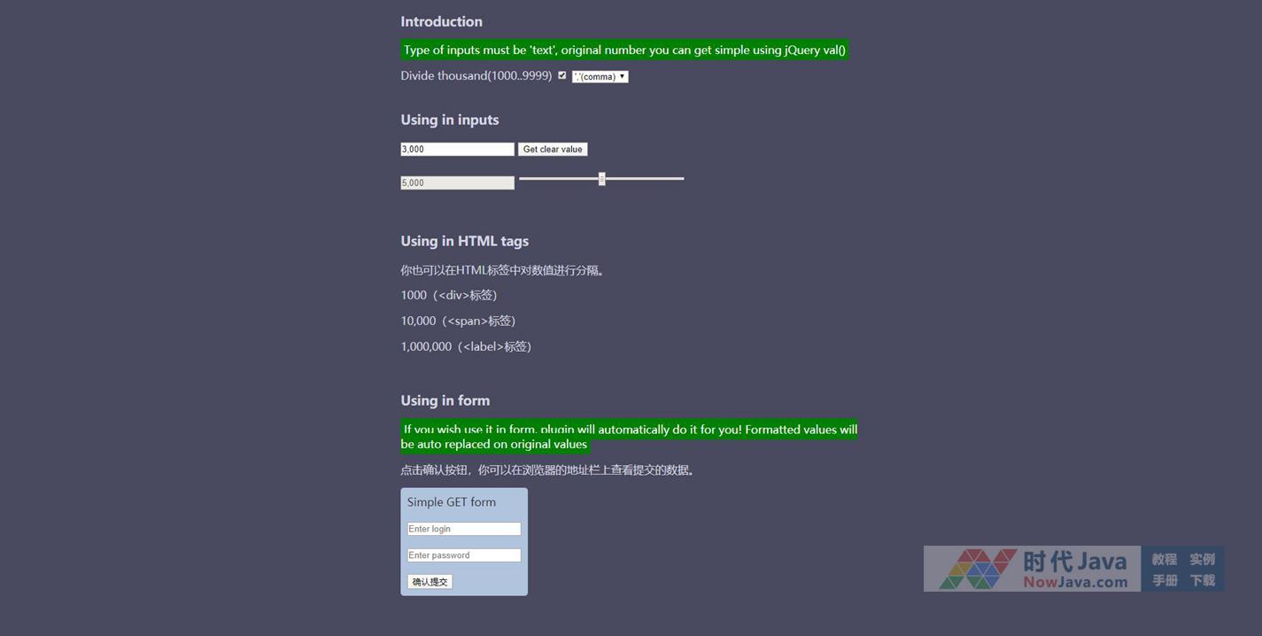 jQuery数字格式化分隔符插件是一款可以按指定格式对大数字进行分隔,可以指定分隔符,数字将以千位为基准进行分隔,本段代码适应于所有网页使用,有需要的朋友们就来下载使用吧。本段代码兼容目前最新的各类主流浏览器,是一款非常优秀的特效源码。