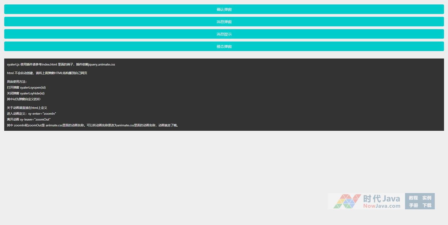 jQuery基于animate.css动画库,实现多种弹窗方式。支持确认弹窗、消息弹窗、消息提示、模态弹窗等功能插件。可自定义对应弹出框代码。代码适用浏览器:搜狗、360、FireFox(建议)、Chrome、Safari、Opera、傲游、世界之窗,是一款不错的的特效源码。