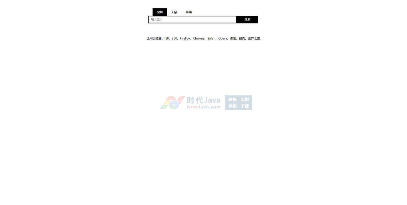 jQuery实现的淘宝网选项卡类型搜索框样式源码是一款基于jQuery实现的类似淘宝网站的jQuery搜索框样式。本段代码适应于所有网页使用,有兴趣的朋友们可以前来下载使用。本段代码兼容目前最新的各类主流浏览器,是一款非常优秀的特效源码。