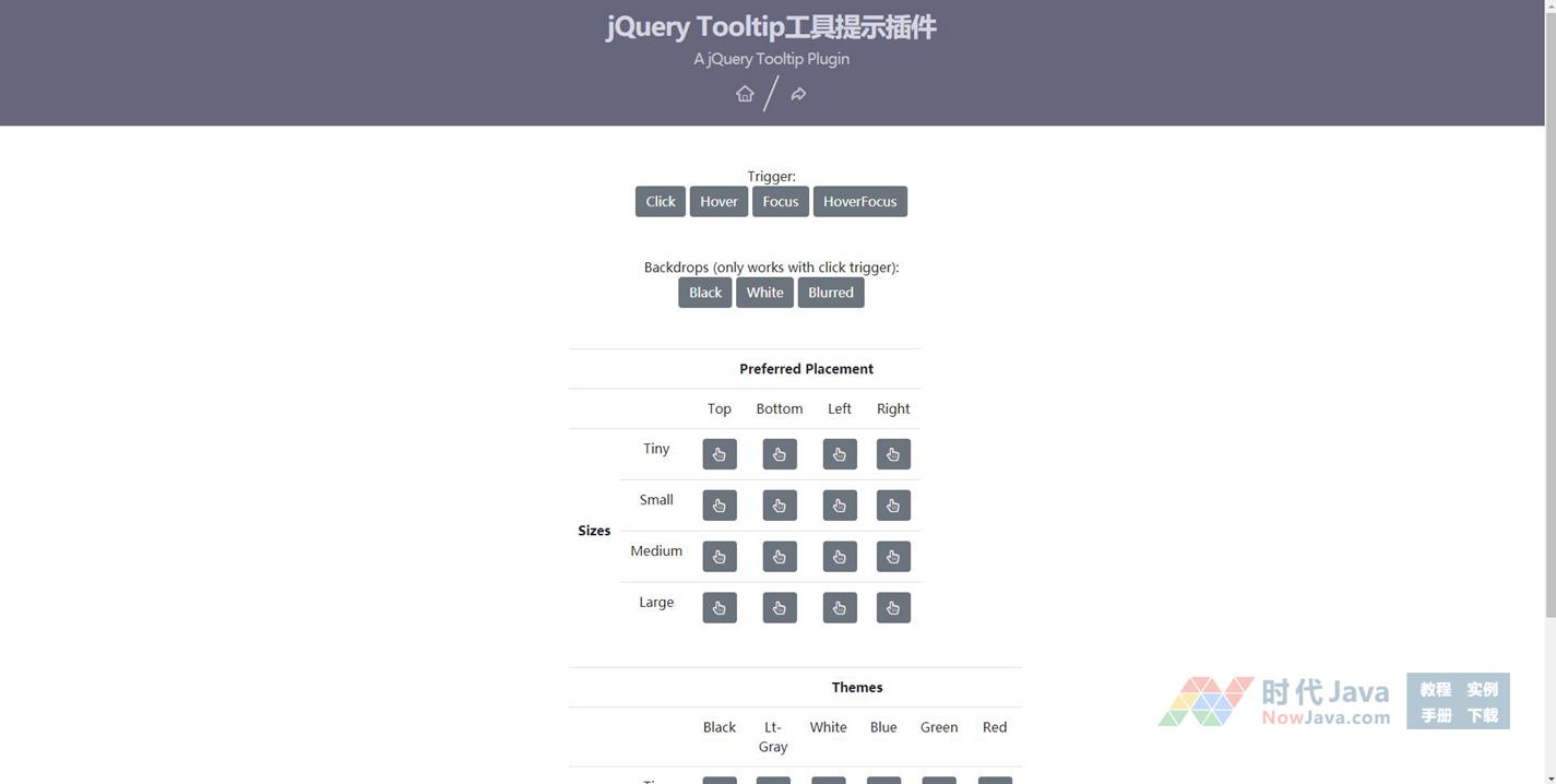 提供多种tooltip的主题:black, lt-gray, white, blue, green, red。