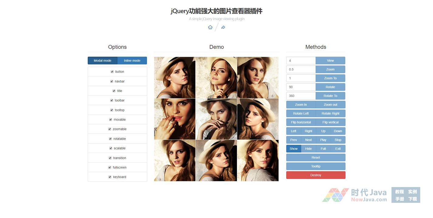 jQuery实现强大功能的图片查看器插件viewer是一款查看图片的代码。它可以实现ACDsee等看图软件的功能。它可以对图片进行移动,缩放,旋转,翻转,可以前后浏览一组图片。该图片查看器还支持移动设备,支持键盘控制,功能十分强大。 适用浏览器:360、FireFox、Chrome、Safari、Opera、傲游、搜狗、世界之窗. 不支持IE8及以下浏览器。有兴趣的朋友们可以来下载试试吧。本段代码兼容目前最新的各类主流浏览器,是一款非常优秀的特效源码。希望大家可以喜欢!