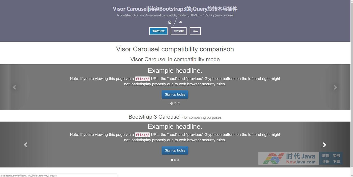 jQuery兼容Bootstrap3旋转木马插件Visor Carousel是一款实现兼容Bootstrap3的jQuery旋转木马插件的代码。制作Visor Carousel旋转木马插件的目的是制作一个轻量级支持多个视图子项的旋转木马。本代码适用浏览器:搜狗、360、FireFox、Chrome、Safari、Opera、傲游、世界之窗. 不支持IE8及以下浏览器。有兴趣的朋友们可以来下载试试吧。本段代码兼容目前最新的各类主流浏览器,是一款非常优秀的特效源码。希望大家可以喜欢!