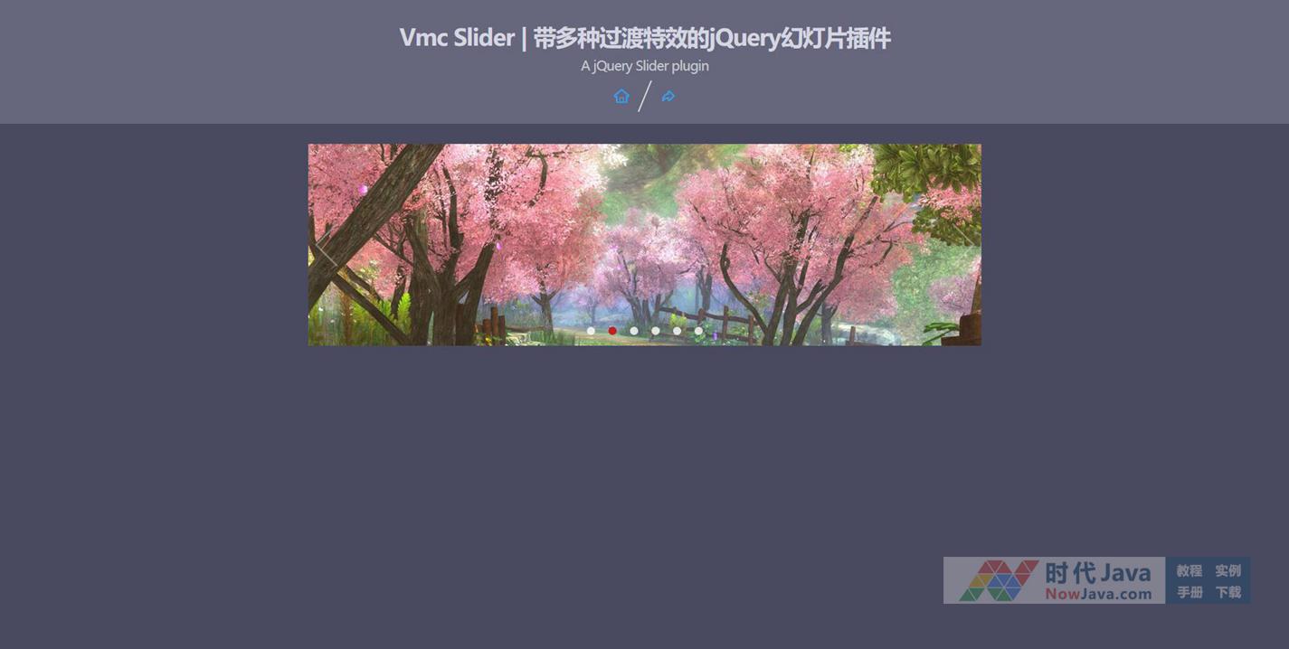 jQuery多种过渡特效幻灯片插件Vmc Slider是一款带多种过渡特效的jQuery幻灯片插件的代码,该幻灯片内置了20种场景转换特效,可以帮助你轻松实现漂亮的图片切换效果。并且它支持包括IE6在内的多种浏览器,非常的实用。